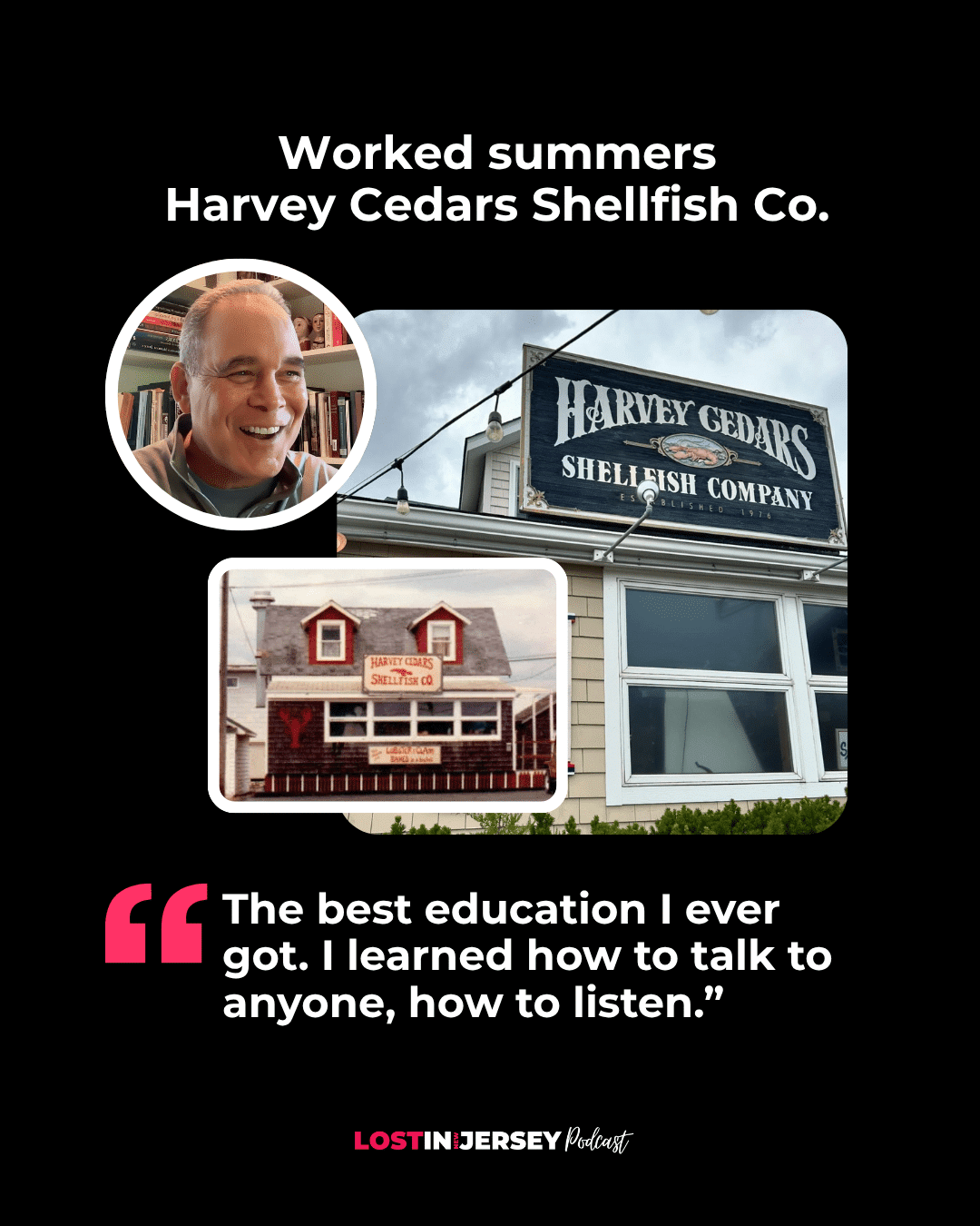 you begin to understand what is required the rest of the world. I waited tables for 10 summers at the Harvey Cedar Shellfish Company in Long Beach Island. There’s a picture somewhere on the wall there with this big Jufro. But I learned more skills talking to people on the Jersey shore, getting them lobster crab cakes that I use.